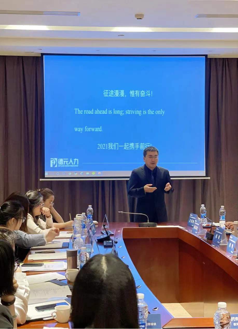 田總認真聽取各項工作匯報并提出相應建議后,對各位負責人從全國各地不辭辛勞地趕往深圳共赴述職會表示了感謝。田總表示,2020年是挑戰倍增的一年,同時也是德元人力集團全力奔跑填寫精彩答卷的一年。各位過去一年的付出和努力,在此刻,得到了完美的呈現。